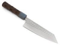 . Finish: Die Minamo-Serie hat eine Klinge mit 3 Lagen und einem ausgesprochen schönen Hammering, das die Optik der Klinge dominiert. Bevor die Klinge gehämmert wird, bearbeitet Yoshimi die Klingen-Oberfläche mit einem besonders feinen Schliff. Griff: Diese Serie bieten wir mit zwei unterschiedlichen Griffen an. Ein Griff ist aus italienischem Olivenholz, gewachst und achteckig (Oktagon) geformt. Der zweite Griff ist aus dunkler Wenge. oktagon. Beide Griffe vermitteln eine großartige Haptik und liegend hervorragend in der Hand.