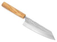 . Finish: Die Minamo-Serie hat eine Klinge mit 3 Lagen und einem ausgesprochen schönen Hammering, das die Optik der Klinge dominiert. Bevor die Klinge gehämmert wird, bearbeitet Yoshimi die Klingen-Oberfläche mit einem besonders feinen Schliff. Griff: Diese Serie bieten wir mit zwei unterschiedlichen Griffen an. Ein Griff ist aus italienischem Olivenholz, gewachst und achteckig (Oktagon) geformt. Der zweite Griff ist aus dunkler Wenge. oktagon. Beide Griffe vermitteln eine großartige Haptik und liegend hervorragend in der Hand.