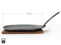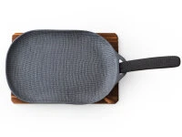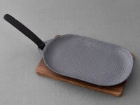 Ob Gemüse, Fisch, Fleisch oder Brot, mit dieser beliebten Grillpfanne bereiten Sie schnell und einfach eine köstliche Beilage zu. Mit Abstellbrett und abnehmbarem Griff. Verwendbar auf allen Herden, dem Grill, dem Backofen oder der Feuerstelle. Nach dem Grillen haken Sie den Griff ein und stellen die Pfanne auf das Abstellbrett. Schon können Sie die Beilage servieren, das gesunde Gusseisen hält sie auch lange warm. Der Boden ist fein geriffelt, so dass Ihre Speise auch ein schönes Muster bekommen kann. Wie alle OIGEN Produkte ist die kleine Grillpfanne aus reinem japanischem Gusseisen im