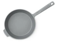 Die Solitto Gusseisenpfanne wurde als formvollendeter Standard für die anspruchsvolle Küche entwickelt. Besonderes Augenmerk wurde bei der Entwicklung auf die tiefen Seiten, mit dem idealen Winkel gelegt. Die Konstruktion der Pfanne sieht vor, die Seiten beim Garen mit weniger Temperatur bei Bedarf mitzuverwenden. Im Gegensatz zu herkömmlichen Pfannen nimmt die Temperatur stetig sanft ab, nachdem die Hitzequelle ausgeschalten wird. So wird die Zellstruktur der Lebensmittel geschont und der Geschmack Umami optimal eingeschlossen. Der Griff ist so ergonomisch geformt, dass sich die Pfanne wie eine Verlängerung des Arms in den Händen halten lässt. Er ist rutschfest, die Oberfläche aus reinem Gusseisen erinnert etwas an Leder. Für den Daumen gibt es eine kleine Mulde, so dass sich die Eisenpfanne trotz Ihres Gewichts problemlos tragen und waschen lässt. Die Gusspfanne wird nach höchsten Standards auf Basis einer über Generationen hinweg stetig verbesserten Technik hergestellt.