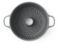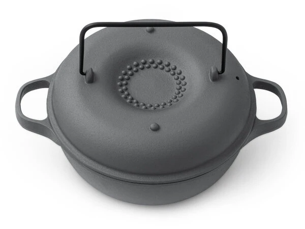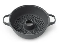 Ein Kochtopf mit Kamin-Effekt. Er ist entwickelt worden, um Kartoffeln, Süßkartoffeln, Mais und Äpfel in einer Art zu zubereiten, die an die Feuer im Garten erinnert. Die Hitze steigt durch den Kamin auf und verteilt sich gleichmäßig auf die Leckereien. So wird alles gleichmäßig gegart und duftend gebacken. Ein Rösterlebnis der besonders nostalgischen Art.
