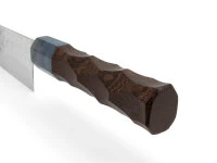 Der Griff dieses außergewöhnlichen Messers besteht aus edlem Wenge-Holz, das mit „stabilize wood“ veredelt wurde. „Stabilize Wood“ ist ein Holz, das mit Acrylharz durchtränkt wurde, um seine Widerstandsfähigkeit und Haltbarkeit erheblich zu steigern. Doch nicht nur die Materialwahl, auch die Form des Griffs ist bemerkenswert. Die oktogonale Grundform wurde kunstvoll gestaltet und bietet eine Vielzahl von Griffmöglichkeiten, wodurch nahezu jede Hand den perfekten, angenehmen und sicheren Halt findet.