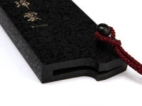 Sicherer Klingenschutz für das Damastmesser Zuiun (Kiwami) Sujihiki 240, 62 Lagen. Der Klingenschutz ist aus Hartkunststoff gefertigt und verfügt über einen Sicherungsstift. Länge ca. 28 cm