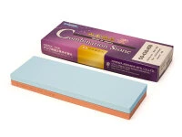 Die Naniwa Kombi Schleifsteine mit jeweils zwei Körnungen sind ein preiswerter und doch qualitativ hochwertiger Einstieg. Sie bestehen aus Schärfsteinen der Serie Super Stone. Die Serie Naniwa Super Stone sind als Wasserschleifsteine bekannt, die besonders strapazierfähig, schnell einsetzbar und sehr effizient sind. Ein kurzes Eintauchen in Wasser genügt und der Schleifstein kann verwendet werden. Die Schleifzeit ist gering, da die Steine eine hohe Konzentration von abrasivem Material haben. Besonders für feine, empfindliche Schneiden aus hartem Kohlenstoffstahl sind diese Schärfsteine sehr empfehlenswert. Das Schleifgefühl ist sehr sanft, die Abnutzung der Steine äußerst gering, mit Papier können die Oberflächen leicht gereinigt und wieder geöffnet werden. Super Stone werden diese Wasserschleifsteine auch deswegen genannt, weil man mit ihnen eine unschlagbar schön polierte Kante erzielen kann. Gleichzeitig bieten die Schleifsteine dieser Serie ein sehr gutes Preis-Leistung-Verhältnis. Gerade wenn der Messerliebhaber es vorzieht mit relativ geringen Übergängen in der Körnung zu arbeiten, kann es sinnvoll sein, mit Kombi Schleifsteinen zu arbeiten. So kann man zum Beispiel sehr günstig ein breites Spektrum von Körnungen abdecken, wenn man die Kombination 400/1000, 3000/5000 und 8000/12000 wählt.