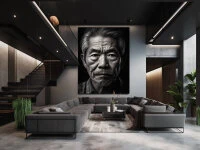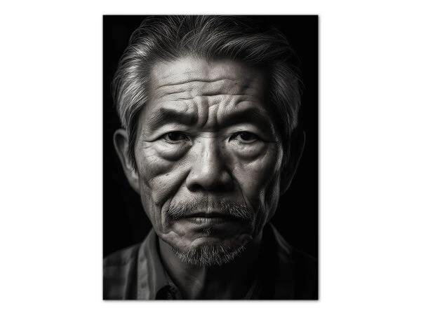 Produktdetails für „Wandbild Portrait Kajiya #1, japanischer Schmied, schwarz-weiß, 3:4“